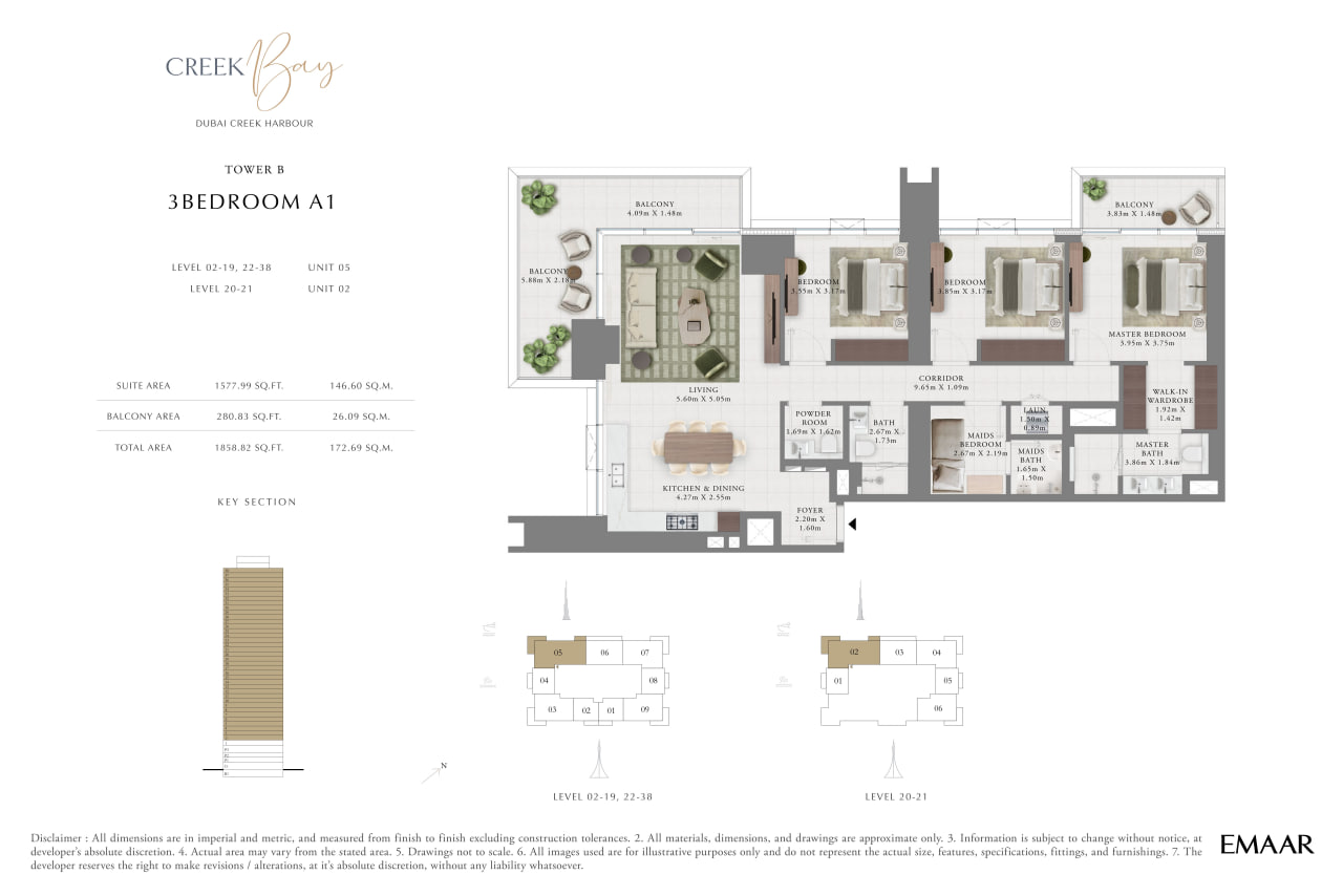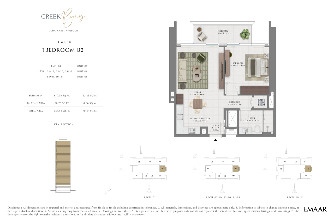Creek Bay Tower B, a premium waterfront development by Emaar Properties, introduces refined coastal living in the heart of Dubai Creek Harbour. Designed as part of Dubai’s future-forward waterfront destination, Creek Bay – Tower B features 354 elegantly crafted 1, 2, and 3-bedroom apartments with contemporary interiors, clean architectural lines, and expansive windows framing panoramic views of Downtown Dubai and the iconic Burj Khalifa. Residents enjoy direct access to lush promenades, marina-inspired surroundings, and proximity to the tranquil Ras Al Khor Wildlife Sanctuary, blending urban energy with natural serenity. Creek Bay – Tower B offers a comprehensive range of lifestyle amenities, including adult and kids’ pools, indoor and outdoor fitness facilities, a padel court, yoga and relaxation areas, landscaped gardens, and dedicated play spaces. Strategically located just minutes from Dubai International Airport and Downtown Dubai, the project ensures seamless connectivity while maintaining a peaceful waterfront ambiance. Backed by Emaar Properties’ proven track record and flexible payment plan extending to 2030, Creek Bay – Tower B presents a compelling investment opportunity in Dubai’s dynamic real estate market, ideal for homeowners and investors seeking long-term value and strong rental demand.
