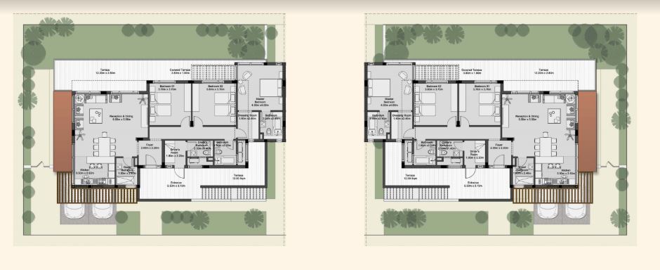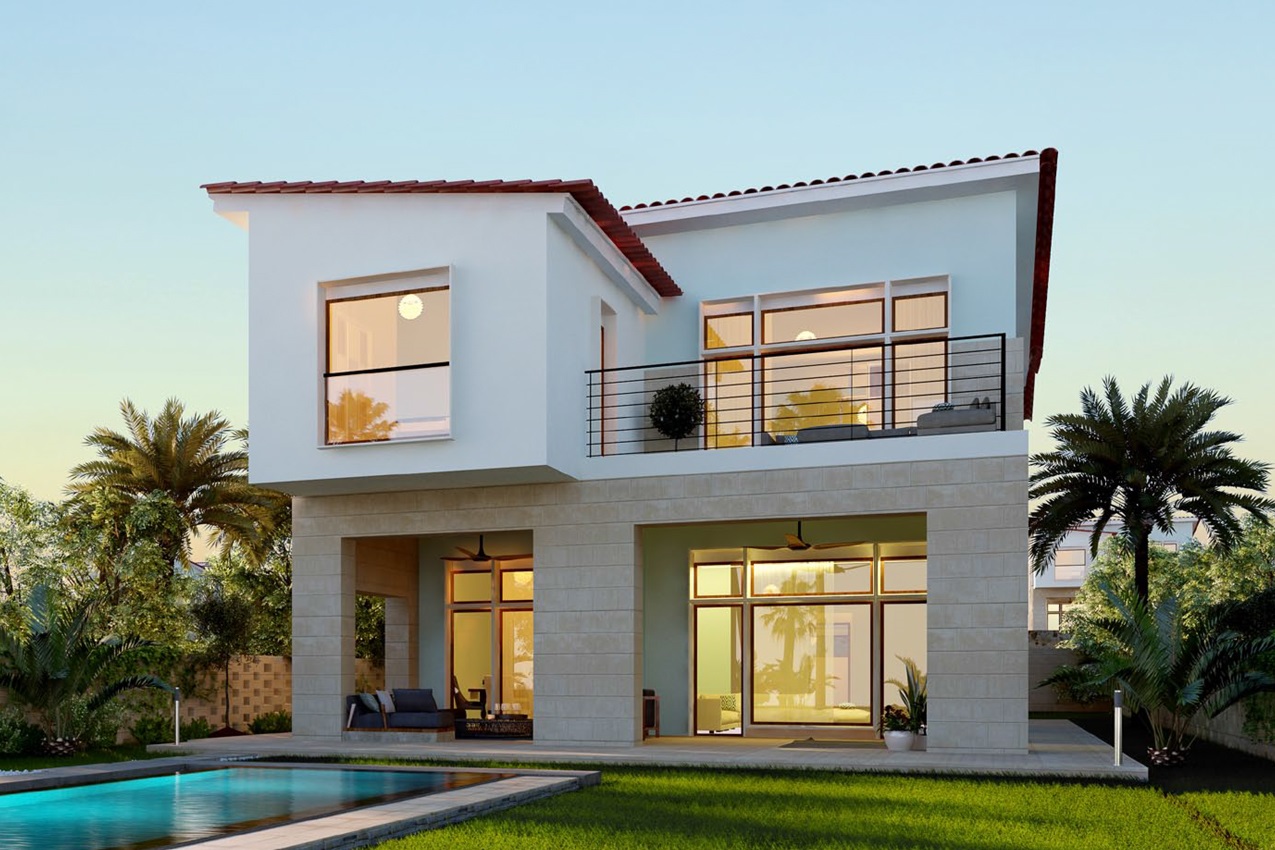 Caesar Bay Residences master-plan design takes into consideration the site topography and the natural surrounding context. The residences are built in tiers to provide a beautiful panoramic sea view. Designing lifestyle rather than concrete buildings; the architectural design concept is to blend architecture, landscape and beach, in addition to indoor and outdoor spaces. This is achieved by providing architectural and interior features that emphasize maximum natural light penetration and ventilation to the internal spaces through green courtyards, high ceiling, skylights, full façade glazing with sea view, large terraces and shaded roof decks.