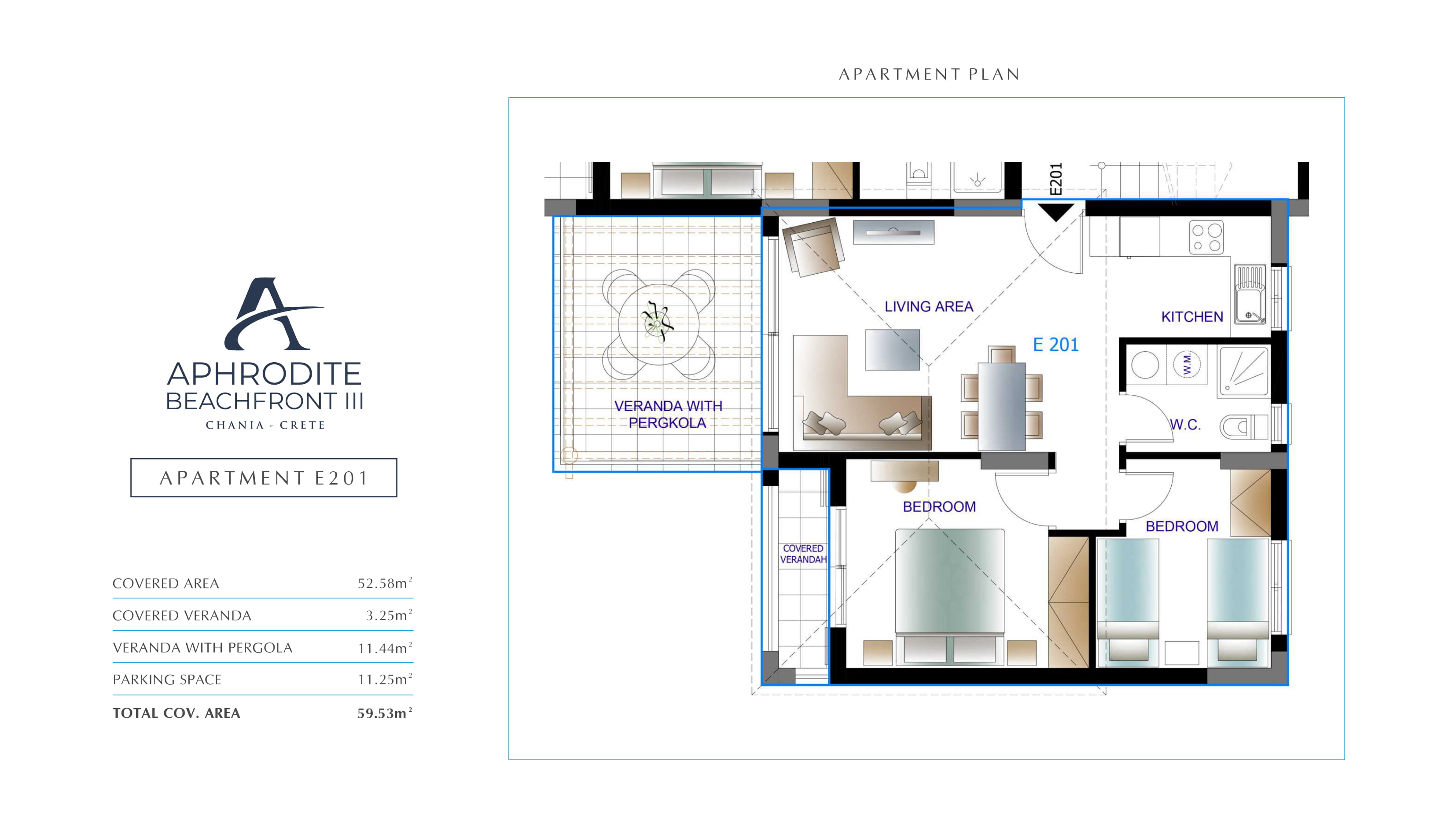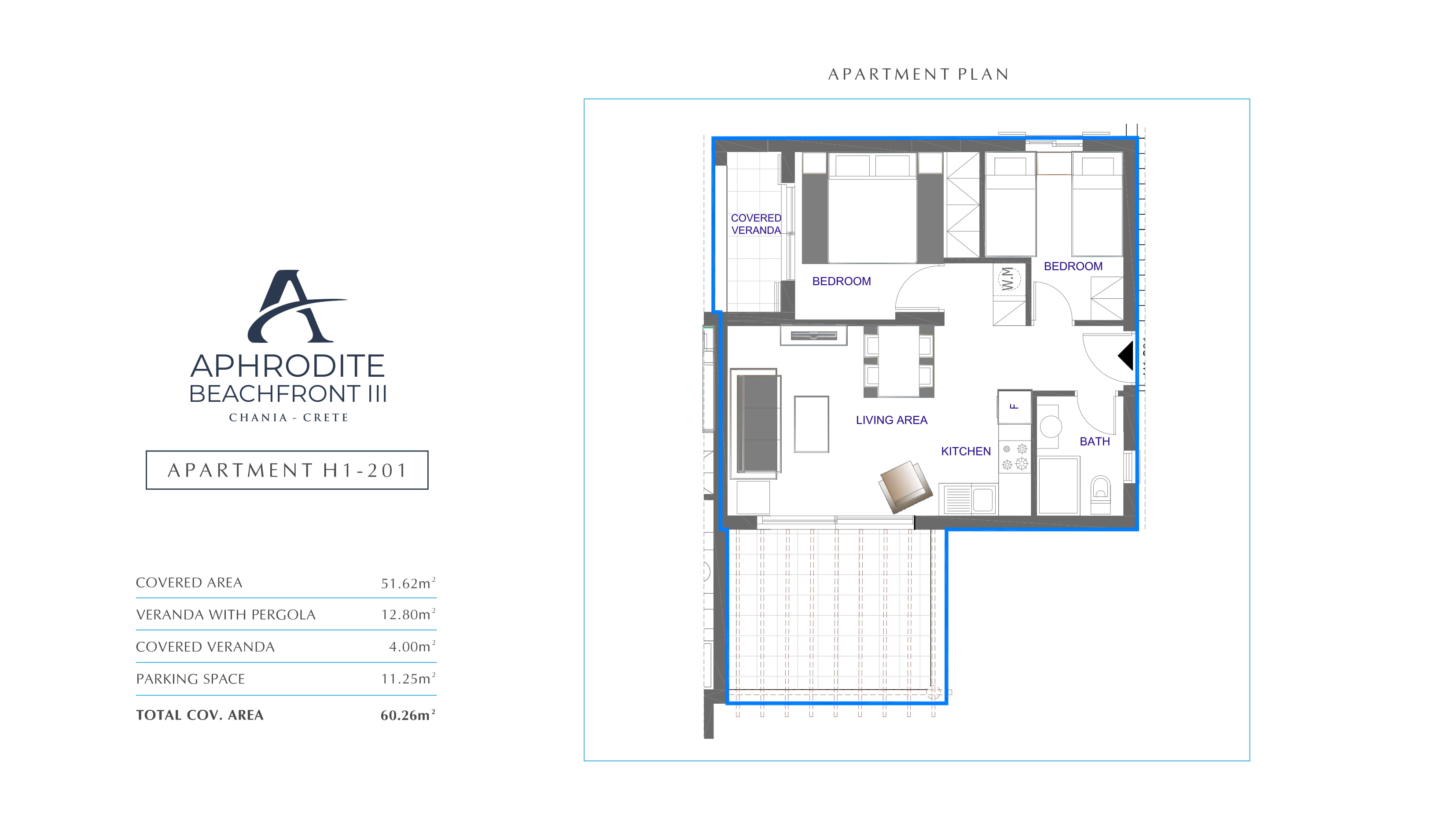 West of Crete in the region of Chania, only 15 minutes from the city of Chania, the internationally awarded project “Aphrodite” is set on a sea front location with the beach at its doorstep. This exclusive development, conveniently situated in the prestigious area of Pirgos Psilonerou on the beach, boasts magnificent views of the Mediterranean Sea and the picturesque mountains.