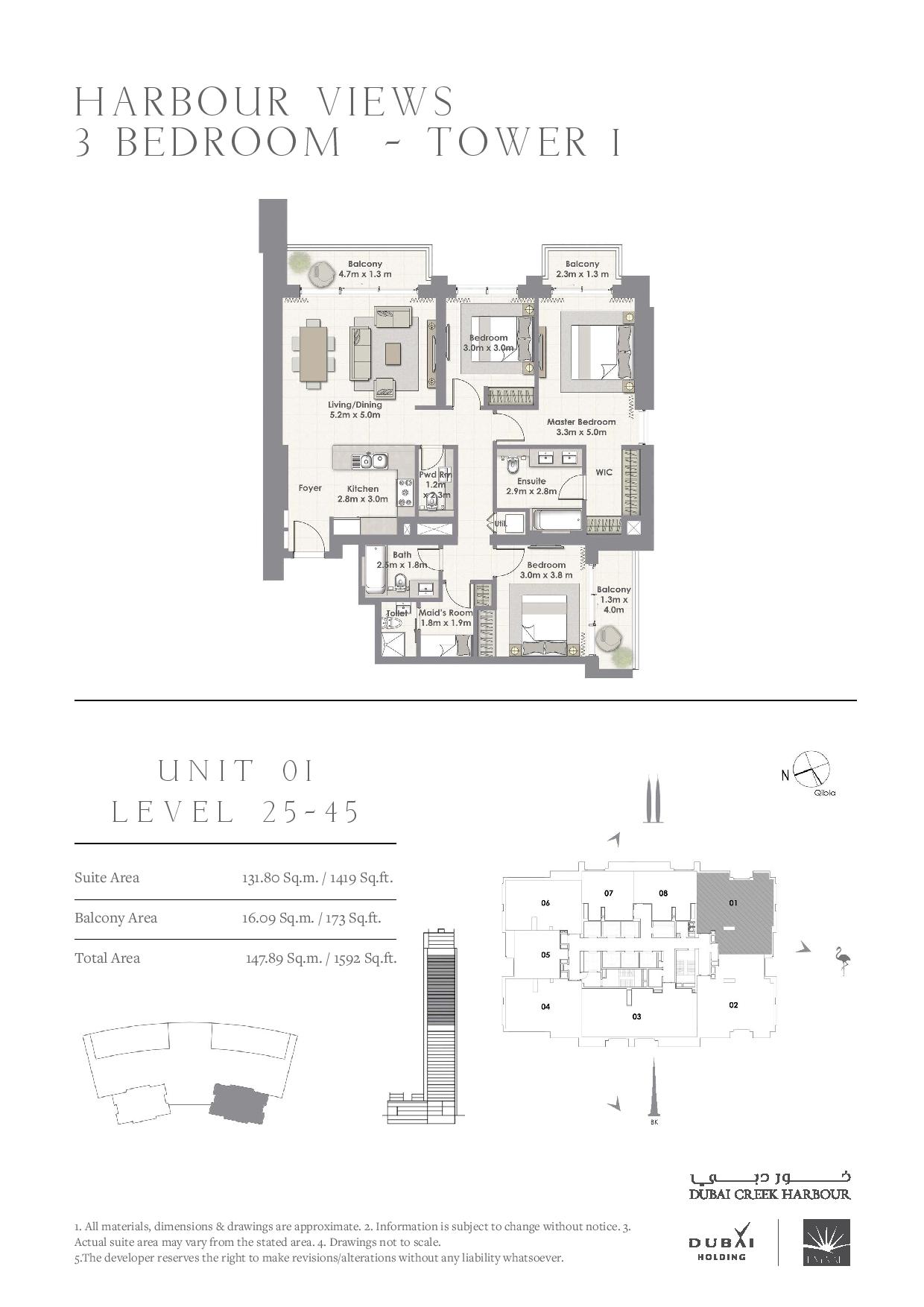 The statuesque Harbour Views are the tallest twin towers on Creek Island. Home to more than 750 one-, two- and three-bedroom glass-fronted apartments, the premium residences soar 51 floors above the historic Dubai Creek, the cradle of Dubai’s history. Anchored to a three-level podium comprising additional apartments and 14 exclusive villas overlooking the park, this ultra-modern structure represents a brand-new vision of waterfront living.