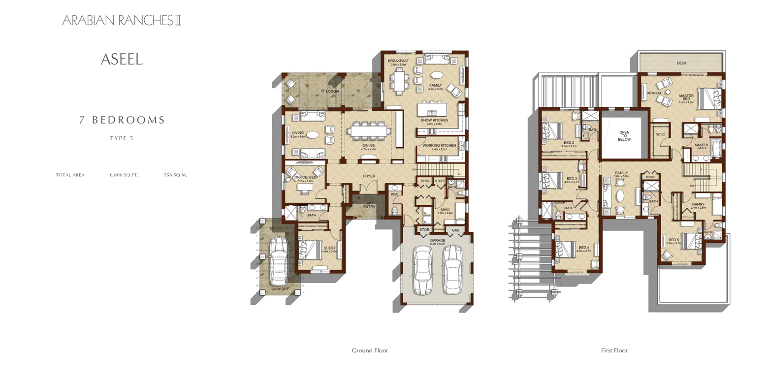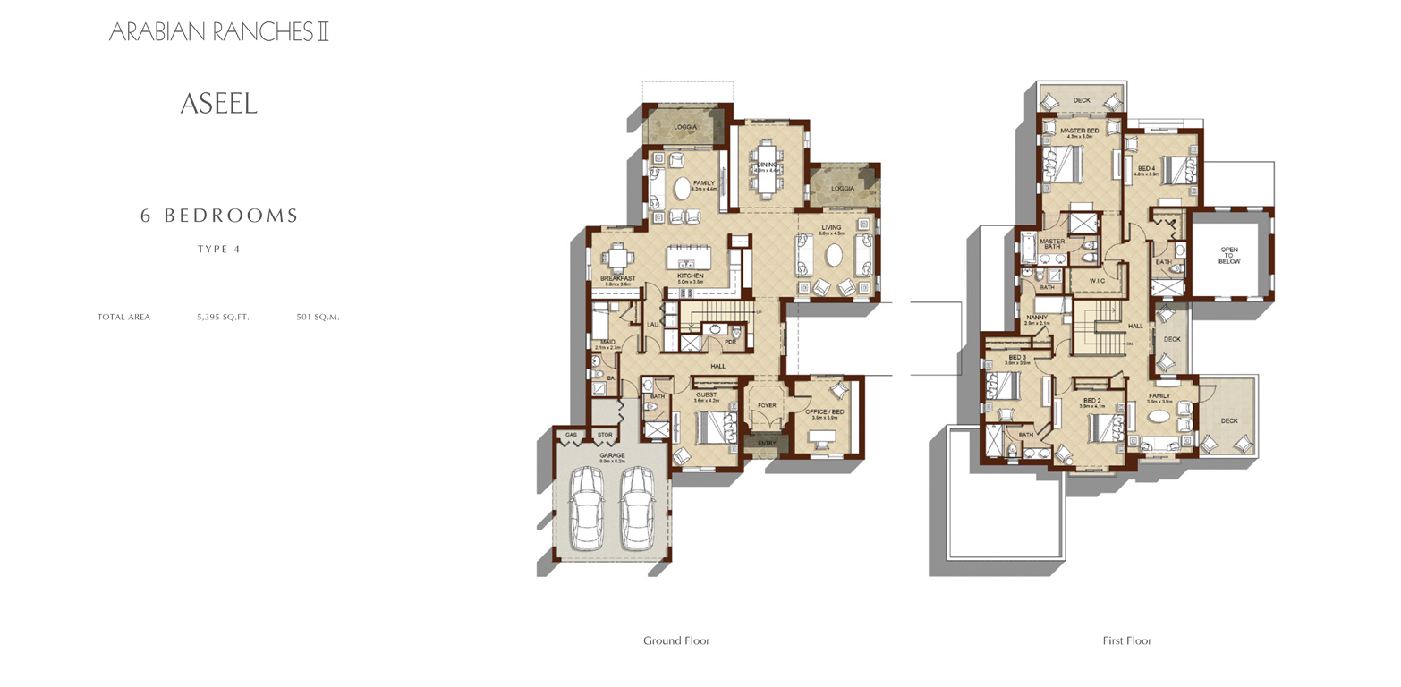 Thoughtfully designed for families, Aseel comprises only 55 two-tiered Spanish-style villas overlooking the Arabian Ranches golf course. Each home is adorned with terracotta tiled roofs, intricate wrought-iron trimmings and an elegant pastel colour palette. The four, five, six and seven-bedroom villas are set amidst a lush green retreat immersed in a community brimming with shopping, dining and leisure activities.
