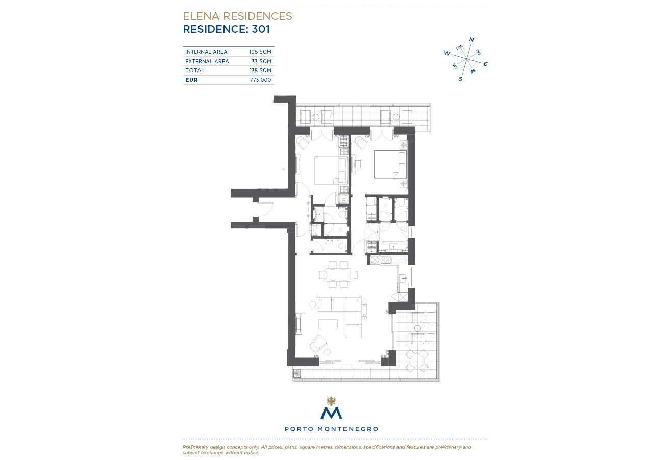 Named after Montenegrin princess, Elena di Savoia, Elena Residences represents an elegant addition to the prestigious Porto Montenegro waterfront residential collection.