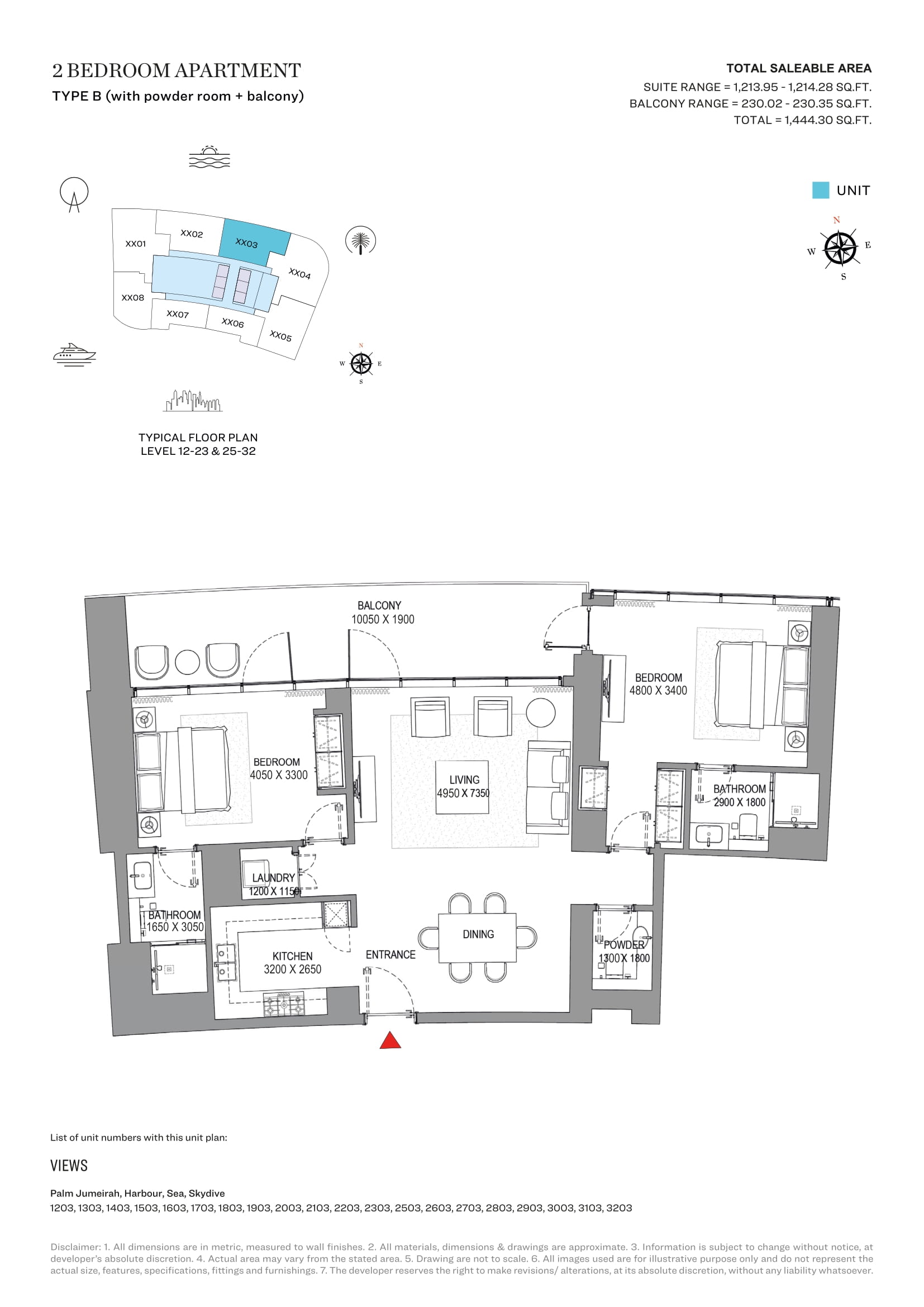 Price per m2 24 775.0 - 25 289.0 AED