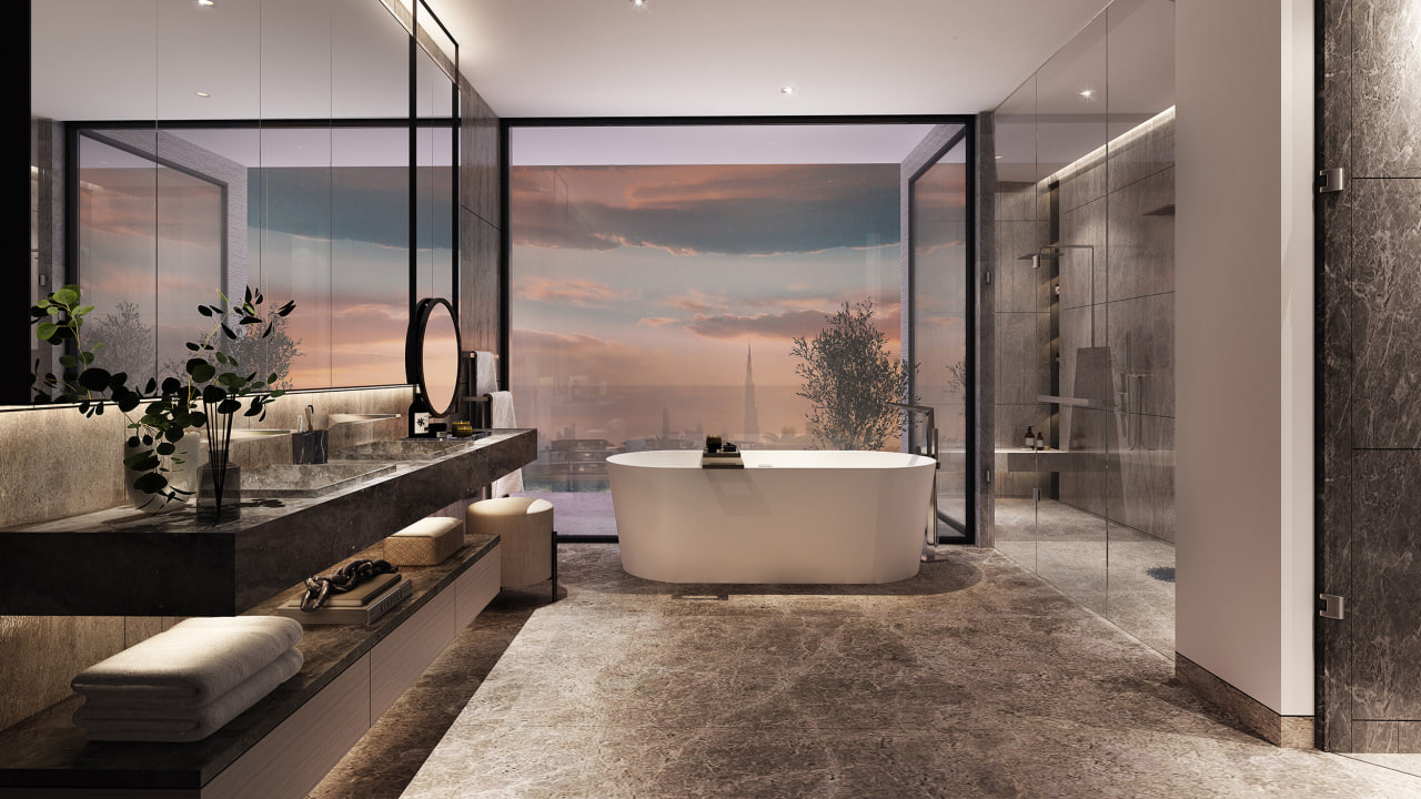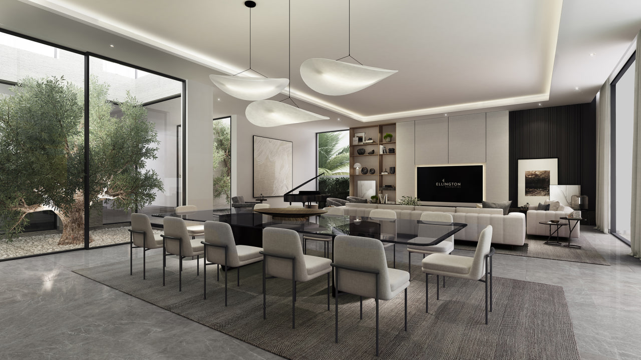 The Sanctuary by Ellington stands in an exceptional location within District 11, facing the blue lagoon with the backdrop of Downtown Dubai and Burj Khalifa. It is connected to the masterplan community through walking trails, seating areas, flexible lawns, multiple seating elements, recreational amenities for all ages, pet play areas, private pools, and a clubhouse along with direct access to the crystal lagoon that is perfect for kayaking, canoeing, and swimming.With views on the pristine lagoon, The Sanctuary villas’ levels are divided into three, the Ground Floor with the living areas, kitchens, and ensuite guest rooms. The First Floor with large expansive ensuite bedrooms while the Second Floor has various private and semi-private activities for its residents.