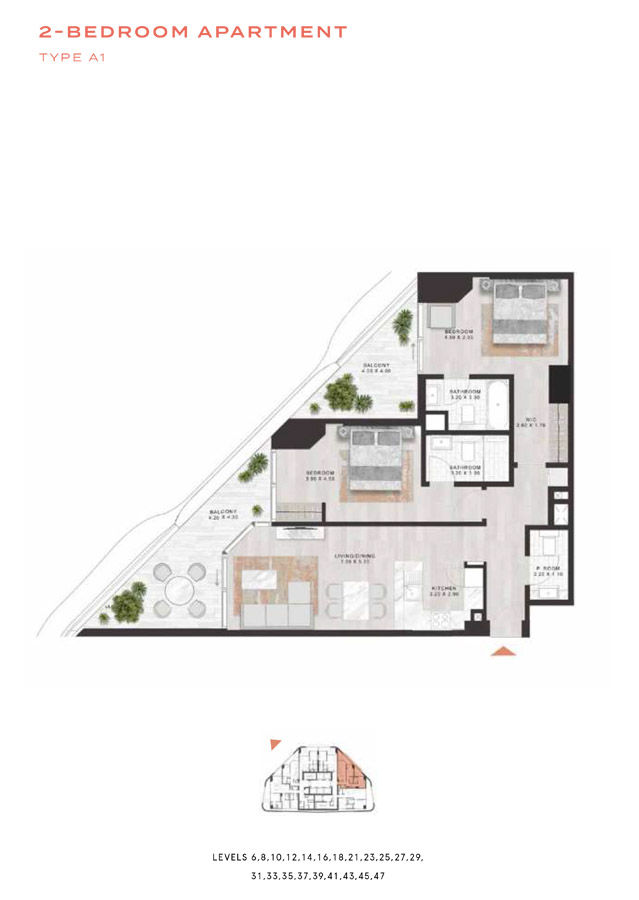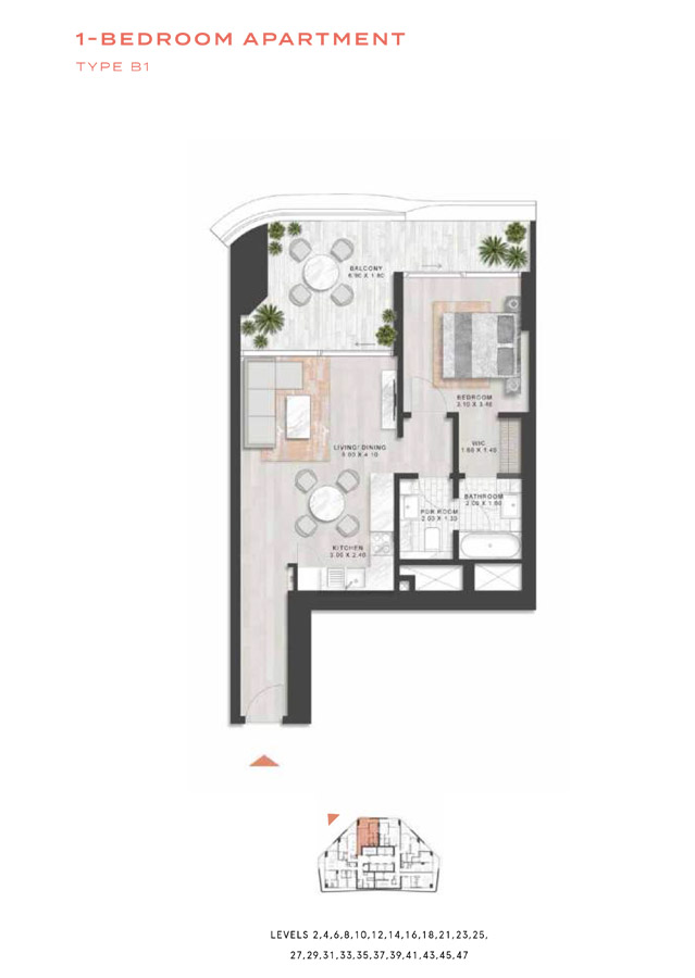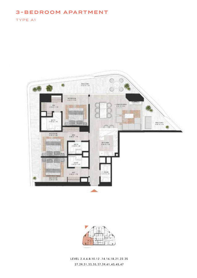 Price per m2 22 990.4 - 24 961.2 AED