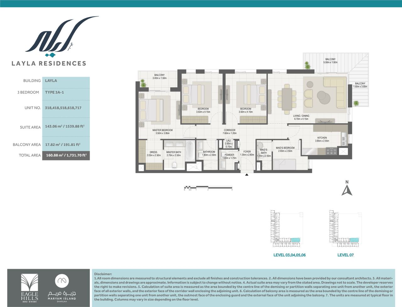 Layla Residences is a new project located on Al Maryam Island, Sharjah. The project developer is Eagle Hills, and the expected completion date is the first quarter of 2027. The property consists of 1-3 bedroom premium apartments. The total number of residences in Layla Residences is 131.