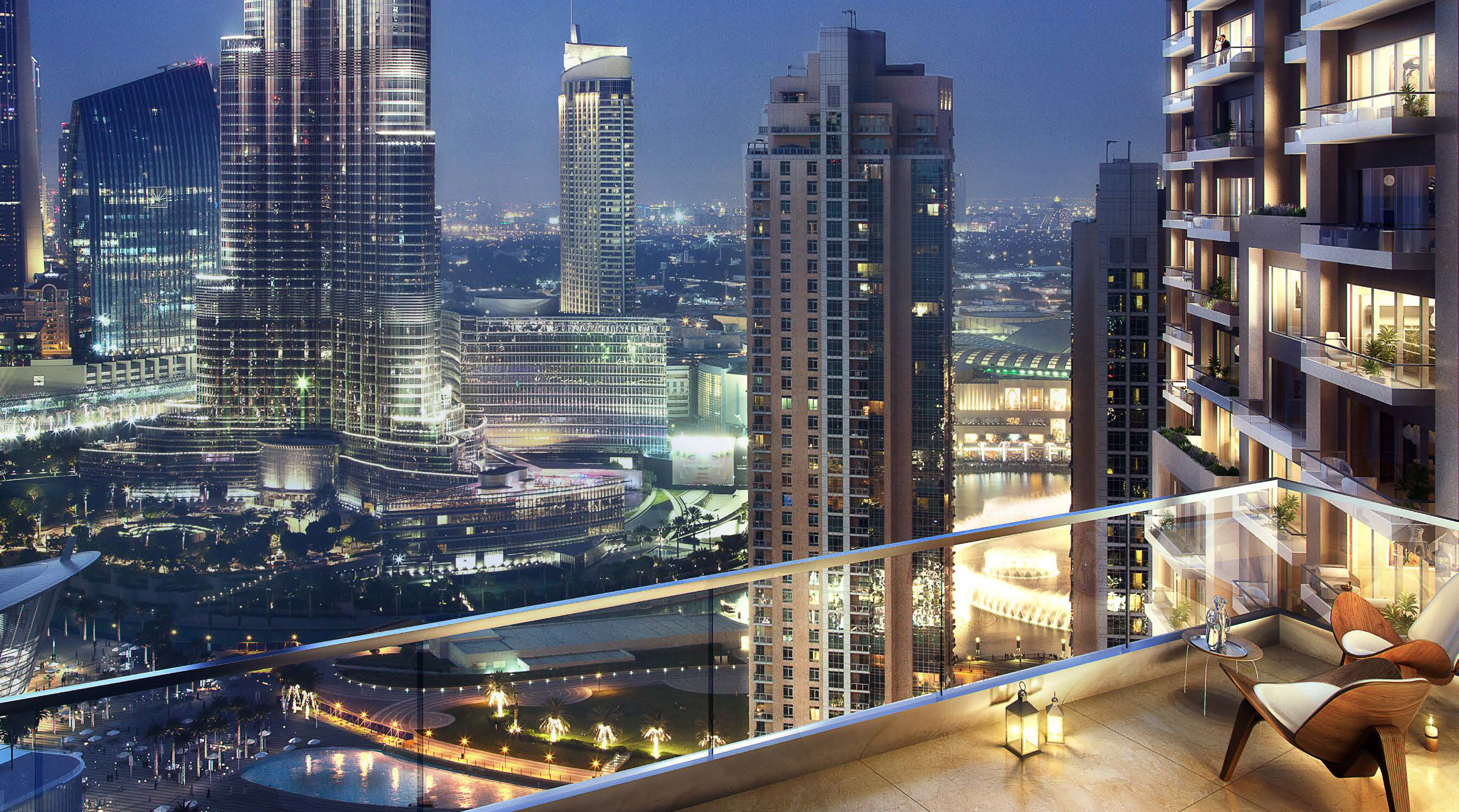 Burj Khalifa (0.4 km), Dubai Mall (1 km), Dubai Opera (0.1 km)
